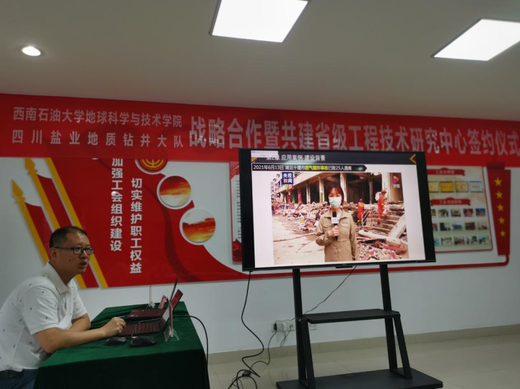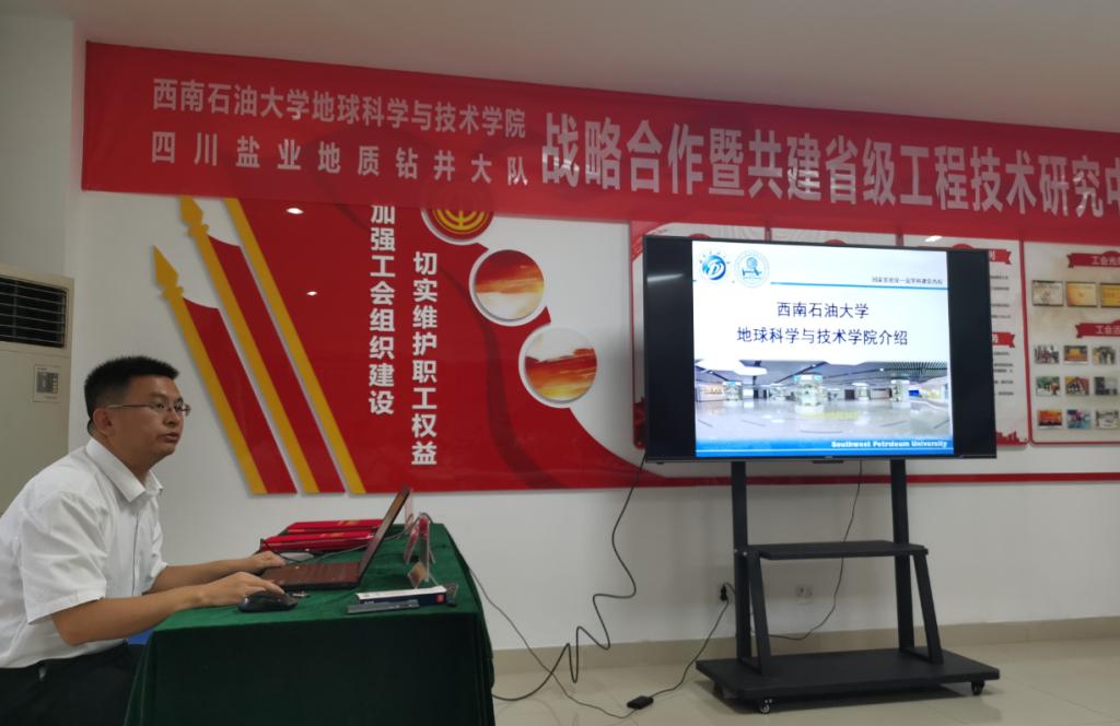 刘加杰介绍了双方领导及人员,随后由双方领导致辞。双方代表为对方介绍了本单位情况。四川盐业地质钻井大队副总工程师王鹏介绍了四川盐业地质钻井大队发展历程和近年来取得的成果。赵晓明副院长介绍了地科院情况,指出学校与生产单位深度合作,是把以知识传授为主的学校教育与生产、科研实践有机结合的新模式,使科技成果更好地转化为现实生产力,有利于提高学校声誉度,助推生产单位高质量发展。