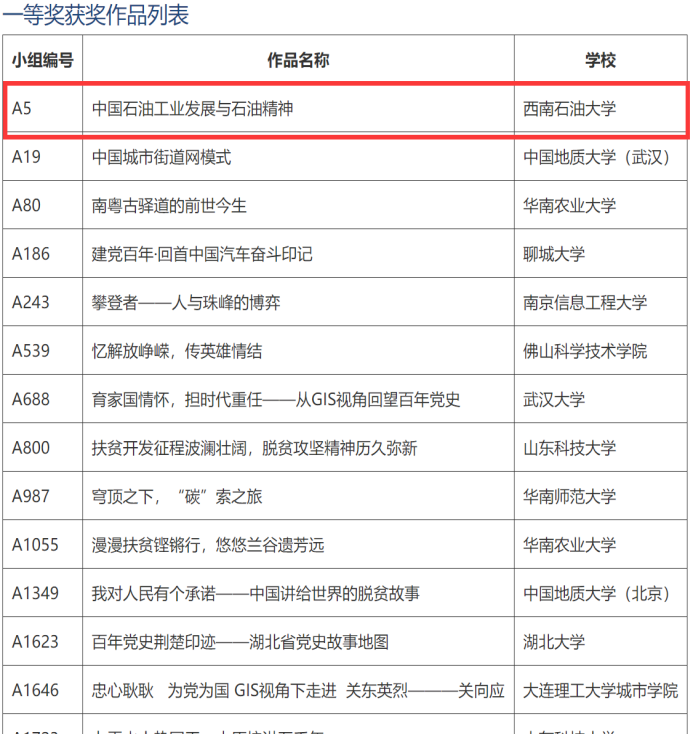 “易智瑞杯中国大学生GIS软件开发竞赛”地图故事组一等奖获奖名单