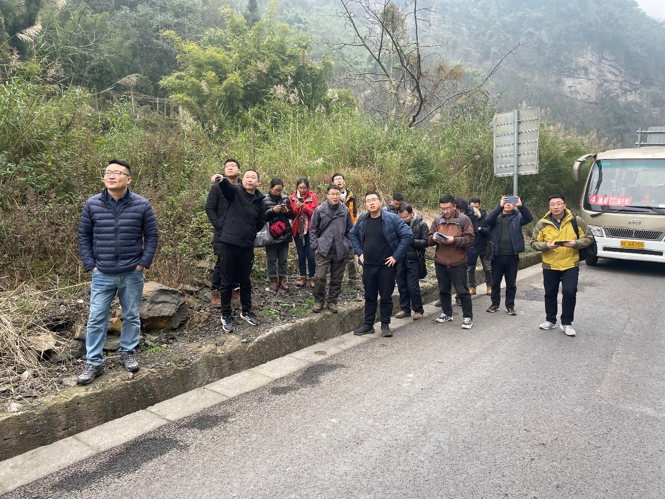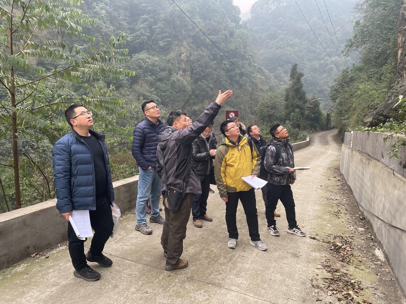 舒洪平总工(左三)与老师们现场探讨地质灾害治理