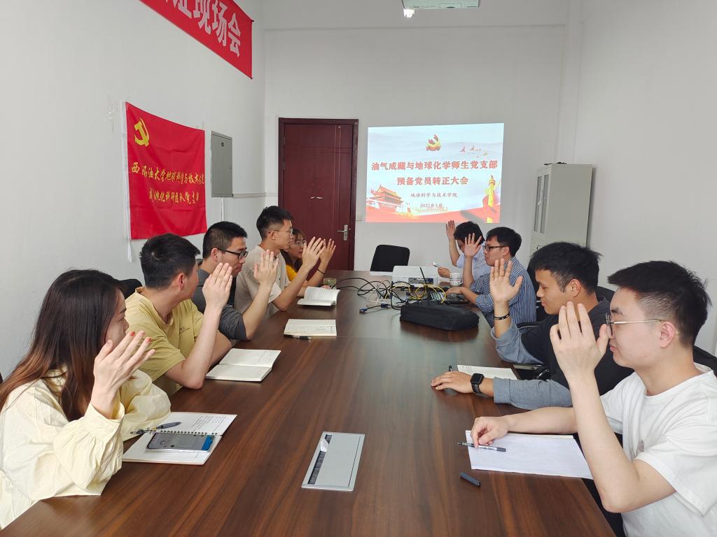 接着,进行预备党员转正大会。会议中,全体师生党员重温入党誓词、再次端正入党动机。同时,对预备党员的思想、学习、生活进行评价。最终,全体表决通过肖苏琦同志预备党员转正。