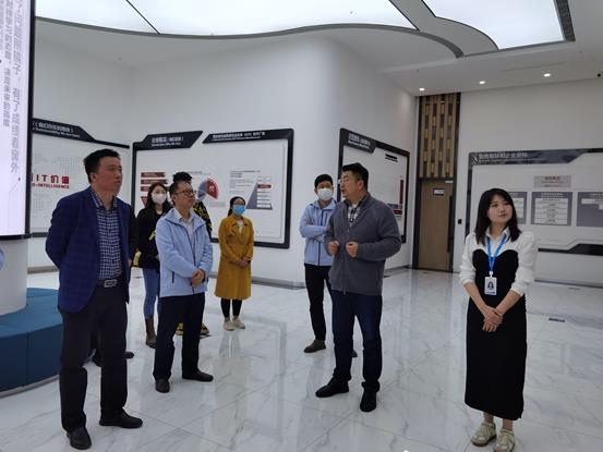 范起东一行在超图谭渝川总经理的陪同下参观了超图展厅,了解了超图企业文化和主要业务板块。在座谈会上,行业总监廖智莹就“地理智慧创新IT价值,产教融合提质人才培养”为主题作了专题报告,主要介绍了超图集团发展历程和集团公司目前教育战略合作平台,希望借此机会和学院达成教育合作意向,共同探索产教融合新道路,推动双方发展再上新台阶。