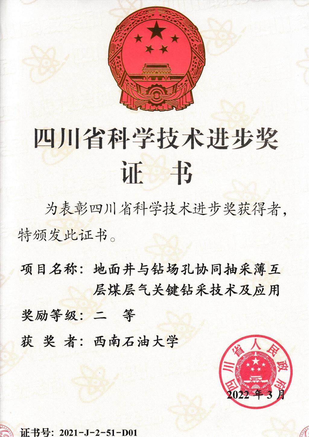 我院2项成果获2021年四川省科技进步奖。其中西南石油大学作为牵头单位与第一完成单位、我院范翔宇教授作为第一完成人的成果“地面井与钻场孔协同抽采薄互层煤层气关键钻采技术及应用”项目,荣获2021年度四川省科学技术进步二等奖。西南石油大学作为牵头单位与第一完成单位、我院苏培东教授作为第一完成人的成果“地铁隧道工程浅层天然气危险性评价及施工关键技术”项目,荣获2021年度四川省科学技术进步三等奖。