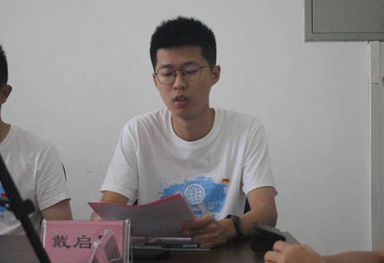 毕业生党员代表戴启辰同学和区舫同学分别进行发言。戴启辰同学在这四年里收获颇丰,学校里的点点滴滴令他难忘,作为党员与毕业生他将怀着对学院栽培的感恩之心在未来继续学习与创新,在未来的道路上继续发光发热。区舫同学谈到了在学生生涯中突如其来的疫情中,他感受到了学生党员群体的积极进取,也感受到了教师党员的负责任、有担当。在未来应该担当起新一代青年的民族重任,到祖国需要的地方绽放青春。