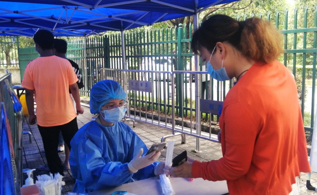研究生党员李怡霖深知在紧张的防疫工作面前,人员缺口会较大,于是主动报名成为志愿者,参与核酸检测中秩序维护、核酸采集登记、帮助申领健康码等工作。