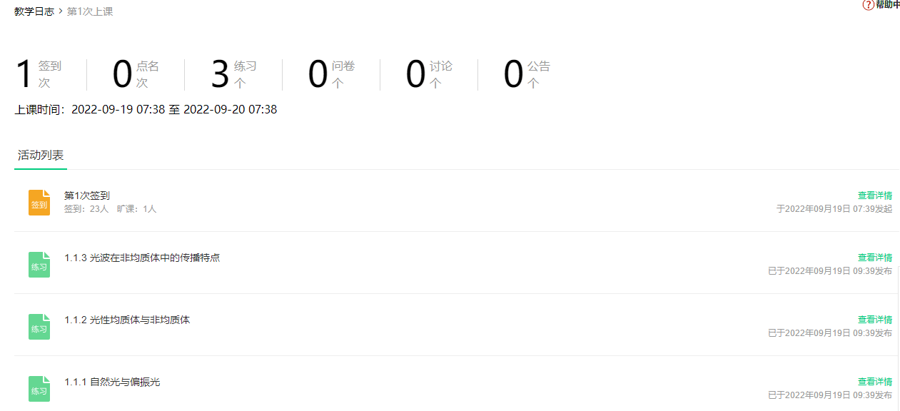 (1)课前:通过慕课堂公告,发布课前预习任务,学生通过视频、测验等功能,了解自己的学习效果。
