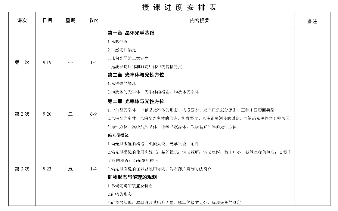 2022年秋季学期受疫情影响,学生尚未返校,《晶体光学》课程开展线上教学。该课程共36学时,其中理论4学时+实验32学时。由于课程要借助偏光显微镜进行实验,线上实际操作难度大。课程组教师共同商讨,对授课计划进行了调整。先完成理论及实验过程中理论的线上教学工作,待学生返校后,线下集中进行显微镜实操,并与后续内容前后衔接。新的授课计划如图1所示。