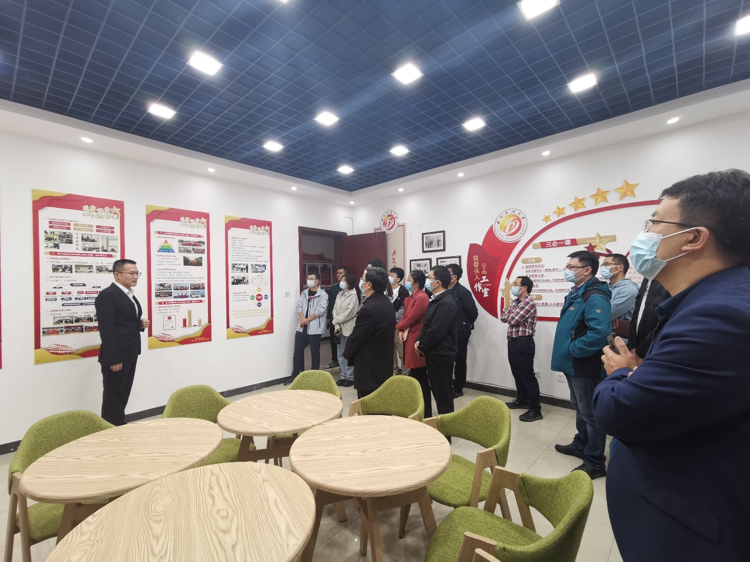 参观中,朱红钧向大家全面介绍了工作室内外墙展板以及室内布局,回顾了海洋油气工程的发展历程,分享了支部建设的相关经验。他指出,将学生纳入教师党支部一起开展工作,有利于更好地培养学生党员,起到相互监督的作用。工作室将党建、教学、科研融为一体,积极开展“三会一课”。同时,教师党员既要指导学生学术,也要注重思政教育的开展,从思想、品德、行为上做出表率,通过党团共建等形式,在文化上、业务上融入党建,全面推进教学科研、人才培养等工作,增进师生间的协作与支部凝聚力。