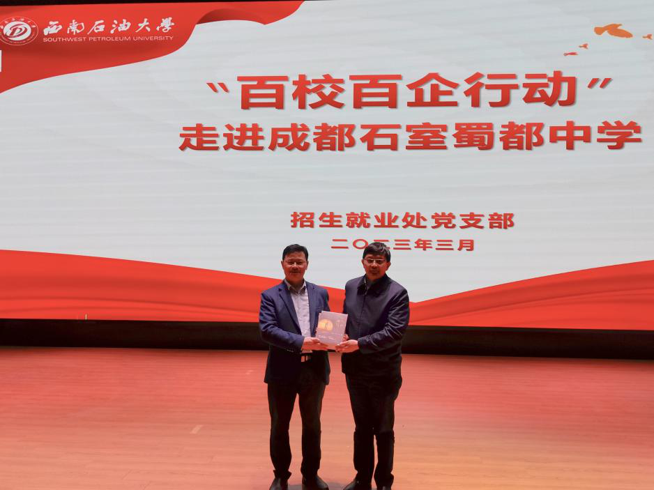 为进一步强化与中学间的交流互动,更好地服务中学师生,吸引更多优质生源,3月28日下午,地球科学与技术学院副院长范翔宇、西南石油大学招生就业处副处长肖虎等一行赴成都石室蜀都中学开展能源安全科普讲座。