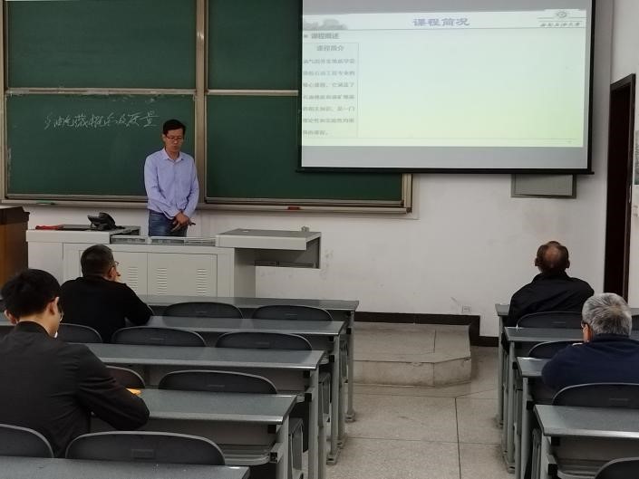 本次试讲活动分教师说课、试讲、点评交流3个环节。刘金华首先进行了5分钟的说课,介绍了《油气田开发地质学》课程概况,然后试讲课程中的“油气藏概念及度量”内容。试讲完成后,廖明光教授、蒋裕强教授以及李斌、渠芳等老师从教学内容、教学组织、语言教态、教学特色、多媒体美化等方面对试讲进行了点评和交流,并对板书、PPT制作等方面提出了改进建议。