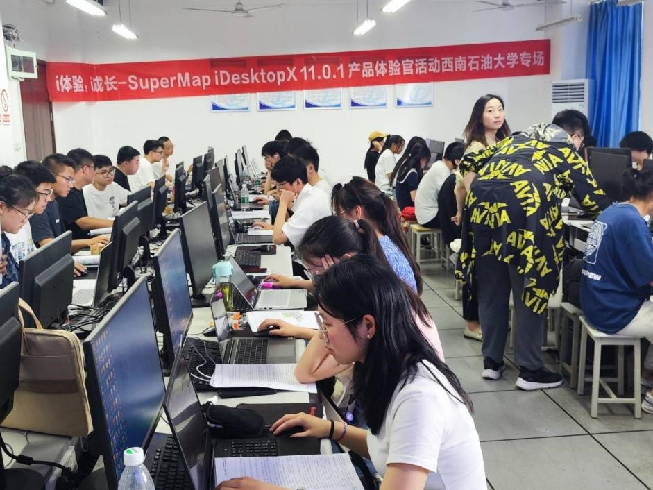 2023年5月18日,北京超图软件股份有限公司与我院地信专业合力举办了一场别开生面的国产GIS软件体验活动--《i体验,i成长,超图产品体验官活动西南石油大学专场》。本专场是超图公司今年西南区域首场校园产品体验活动,旨在进一步推广和体验国产GIS软件,培养地理信息人才,促进校企合作未来高质量发展。地科院副院长赵虎、地信教研室全体教师以及地理信息科学专业2021级和2022级共118名同学参加了这次活动。本次活动由地信科研团队党支部研究生(一年级)党小组和学院GIS学会共同组织。