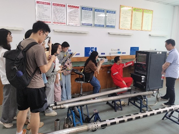本次实习内容涵盖了测井基地文化参观、安全操作规范、模拟标准井规范化测井作业、测井仪器辨识及维修、测井资料综合处理解释等知识。在为期两周的实习过程中,同学们顶着烈日,互帮互助,团结友爱,严格遵守测井公司规则,服从老师安排,专心听讲,认真记录,学习氛围浓郁。在与专家们交流过程中,同学们积极提出自己的疑惑,虚心向测井基地专家们请教,力求把课堂中学到的理论知识与自己现场的所见所闻有机结合、融会贯通。此外,桑琴、陈猛等老师把课堂搬到了现场,为同学们开展现场教学,使同学们更加深刻、透彻理解测井方法原理相关知识。