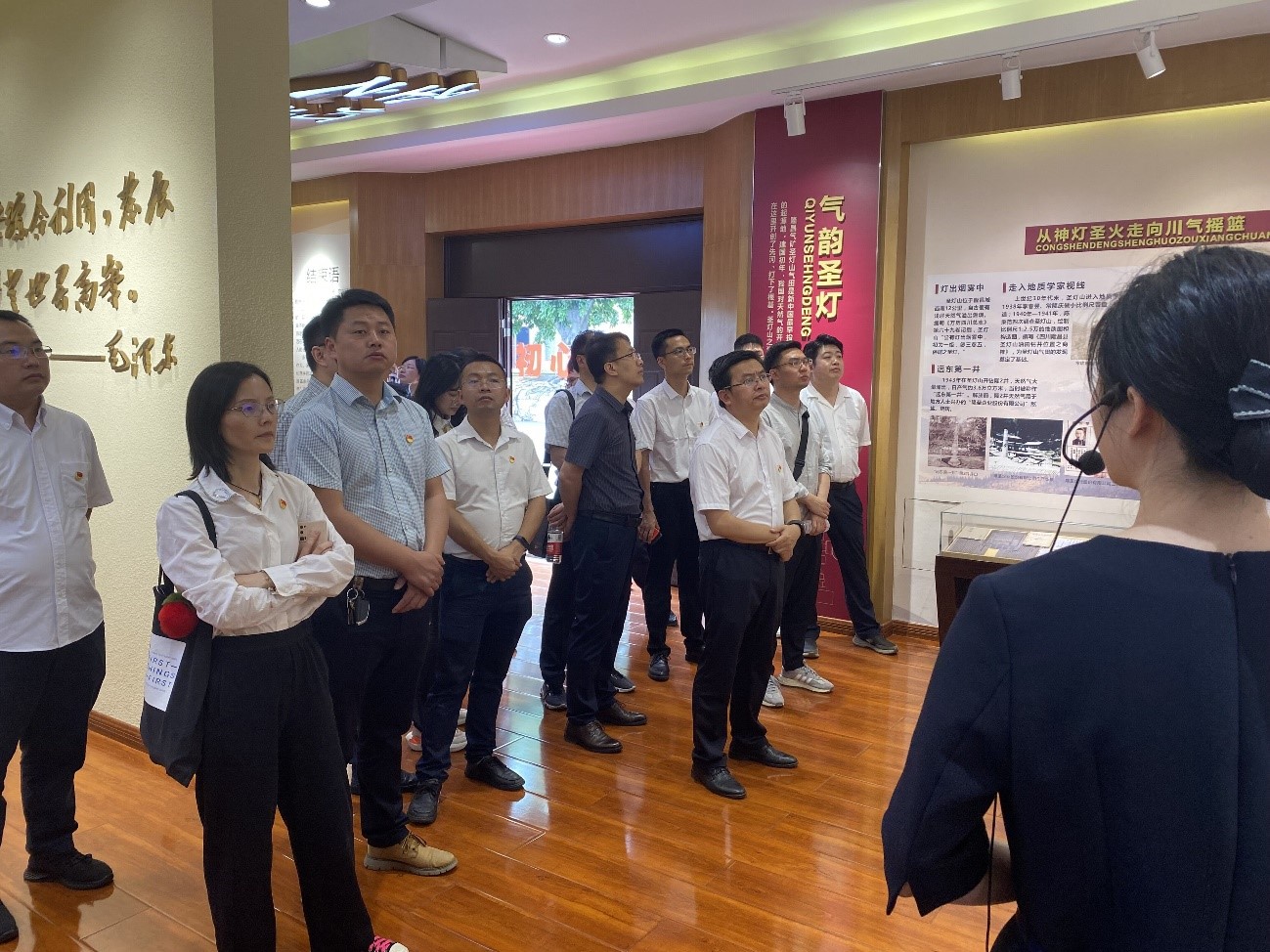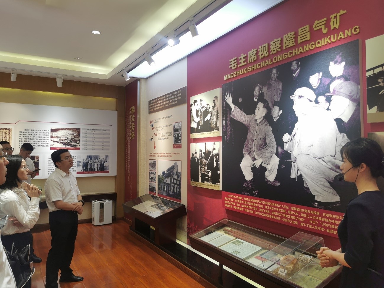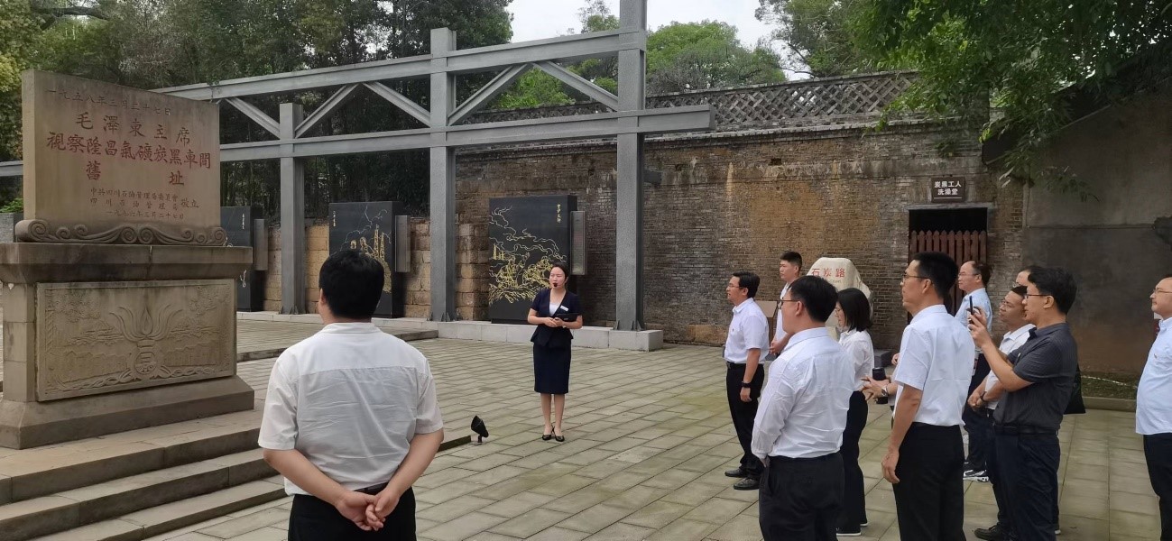 为推动主题教育走深走实,6月6日地科院党委副书记(主持工作)赵晓明带队,组织处级干部、科级干部、教职工党支部书记、教研室主任、教师党员代表、学生党员代表赴毛泽东主席视察隆昌气矿纪念馆,深入开展学习贯彻习近平新时代中国特色社会主义思想主题教育现场教学活动。毛泽东主席视察隆昌气矿纪念馆包含“气韵圣灯”“伟大关怀”“筑梦兴川”“不忘初心”四个板块,体现了毛主席等老一辈无产阶级革命家对川渝油气工业的关怀,展示了四川油气工业在中国共产党的领导下不断发展、壮大并取得辉煌成就。