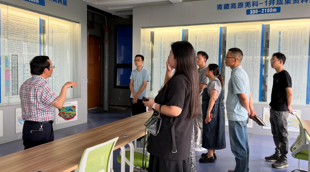 张勇首先代表学院对党桂红处长一行的到来表示热烈欢迎,并从学院整体情况、党建工作情况等方面进行了简要介绍。随后,付修根介绍了羌塘盆地科研团队党支部的基本概况、党建促进科研的措施、党建促进人才培养的模式,并带领大家参观了羌塘盆地科研团队党支部基地。付修根向大家展示了近年来团队的野外考察经历、人才培养成果、青藏高原羌塘盆地科研资料和成果等,表达了团队成员“让青春在高原上绽放”的勇气和决心。付修根讲解了羌塘盆地科研团队党支部成员为了响应国家能源战略需求冲上青藏高原的科研报国精神,讲解了羌塘盆地科研团队党支部王剑教授老党员身上不怕困难、迎难而上的精神对团队新党员的影响和传承。
