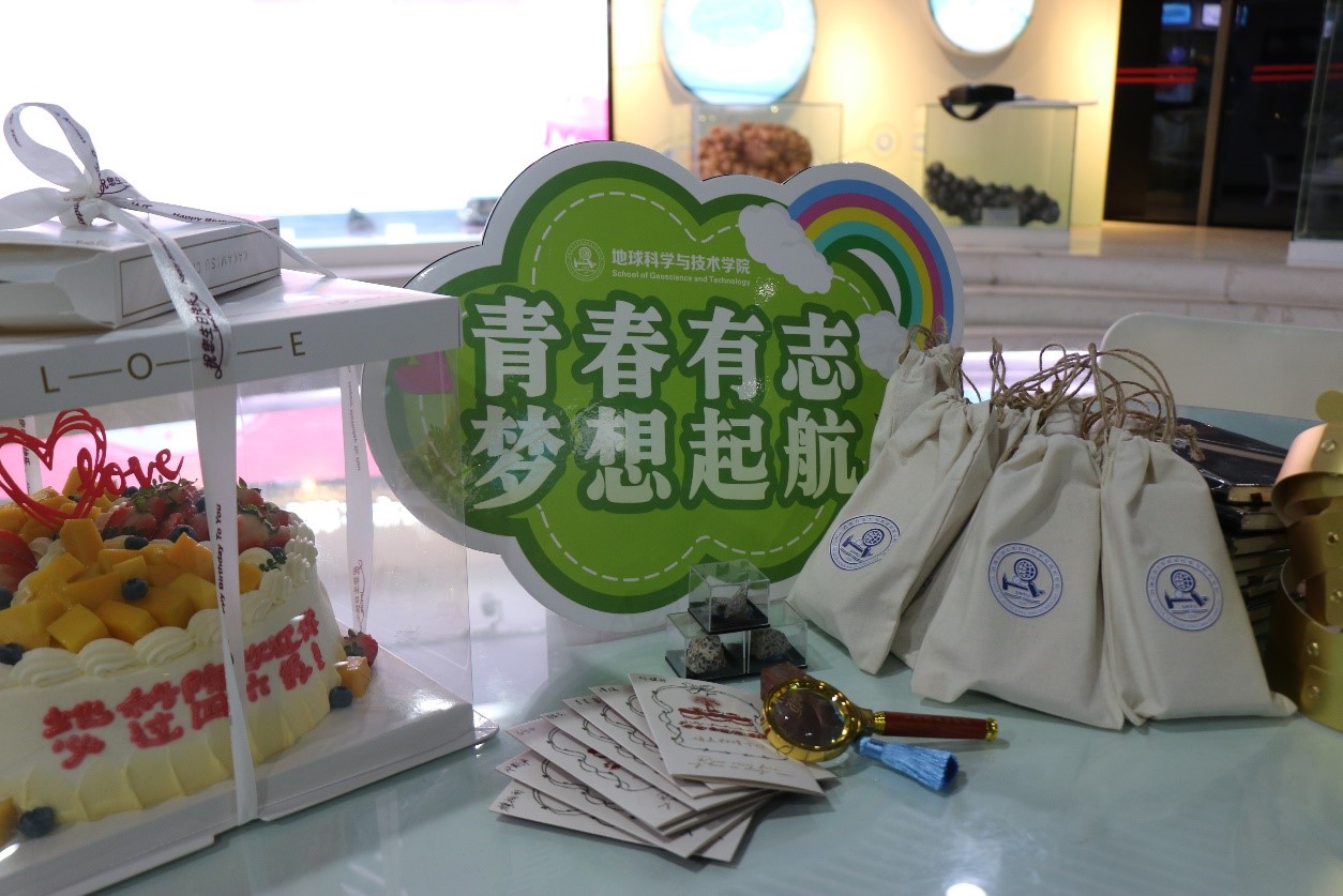 为新生过生日的暖人场景只是地科院迎新工作中的一瞥,迎新期间地科院用全体新生姓名组成的“大地无垠、格物致知”院训展板背景墙,记录下同学们与地科院的“初次见面”,并为每位新生发放了一枚印有青春代“岩”、“石”比情坚的小小矿石,体现了学院的学科专业特色,增强了新生的专业认同感。