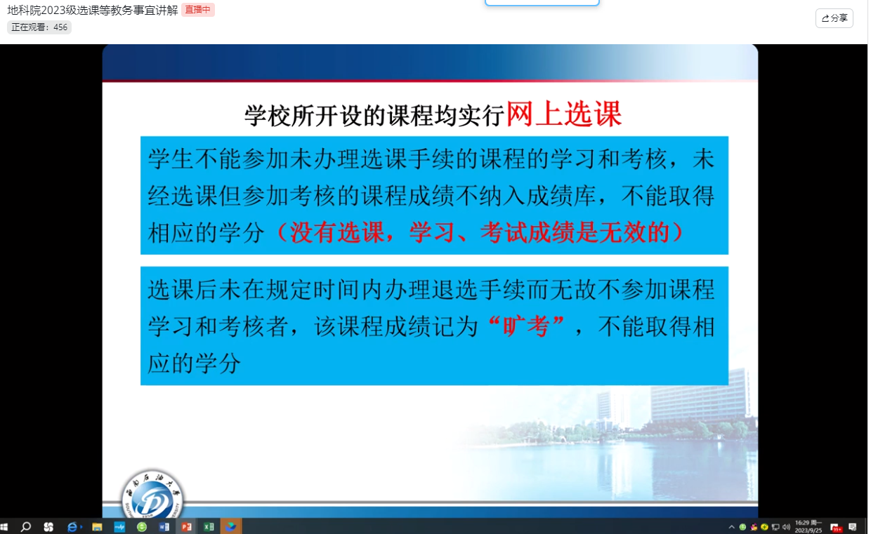 上好专业思想教育“第一课”。9月27日上午,学院资源勘查工程、勘查技术与工程、地质学、地理信息科学、城市地下空间工程五大本科专业分专业进行专业思想教育。学院领导、本科教研室主任、教研室党支部书记、学业导师(班主任)、新生辅导员与新生聊专业、谈未来。“油田是什么样子的?”“我们专业毕业以后会从事什么工作?”新生纷纷提问。学院专业教师一一详细为同学们答疑释惑。原本安排两课时的专业思想教育,在师生畅聊中,不知不觉三课时了还未结束,增强了新生同学的“专业自信”。