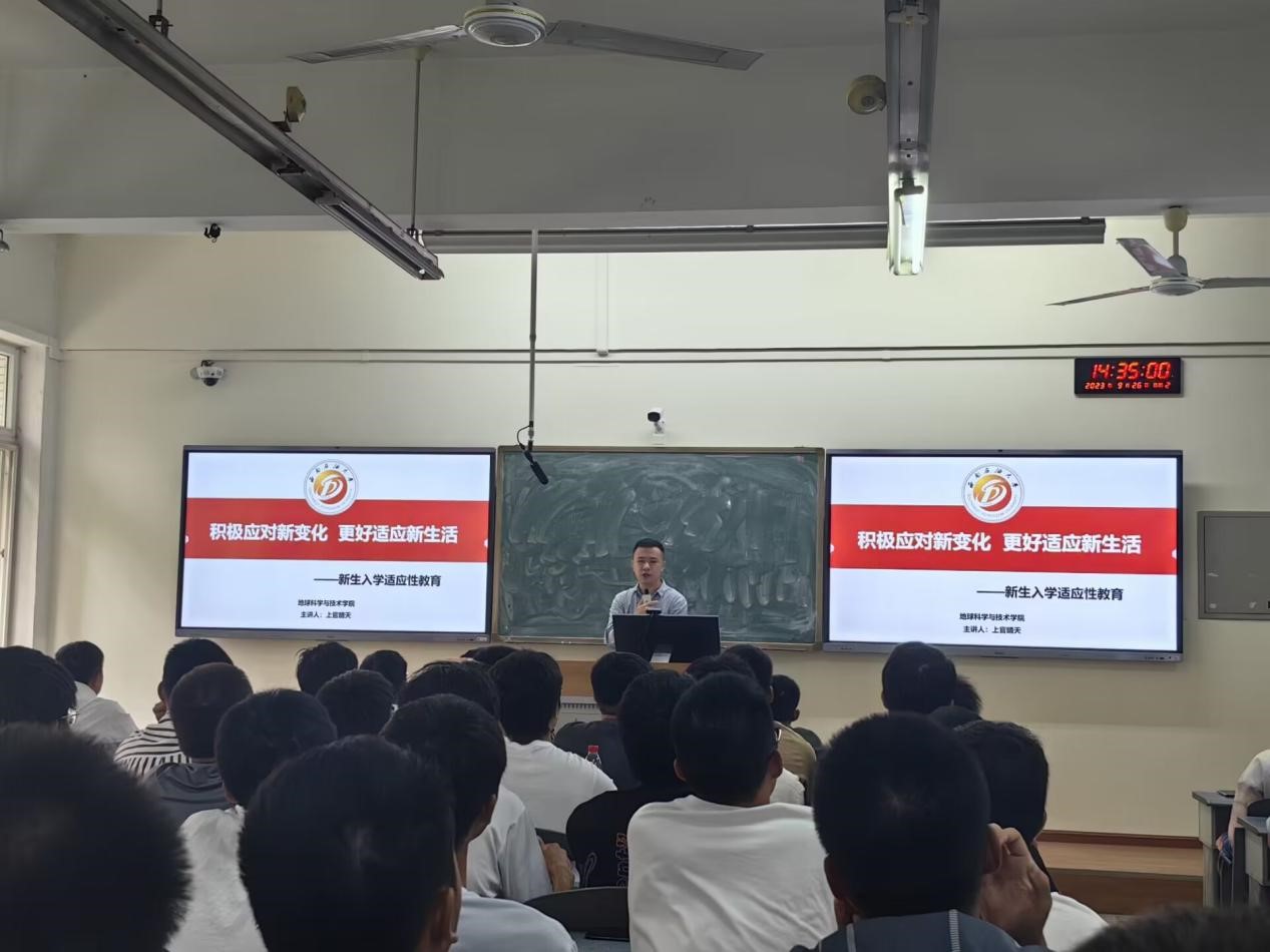 为指导和帮助学院2023级本科新生有意识地进行角色转变,尽快适应大学学习生活,了解校园文化、校史校情,培养知校爱校荣校的思想情感,提高网络文明素养和安全法纪、生涯规划、心理健康、专业自信等意识,地球科学与技术学院认真落实学校安排部署,凝聚全员育人合力,扎实开展入学教育,让全体新生开好头起好步,多措并举扎实开展本科新生入学教育,上好开学“第一课”。
