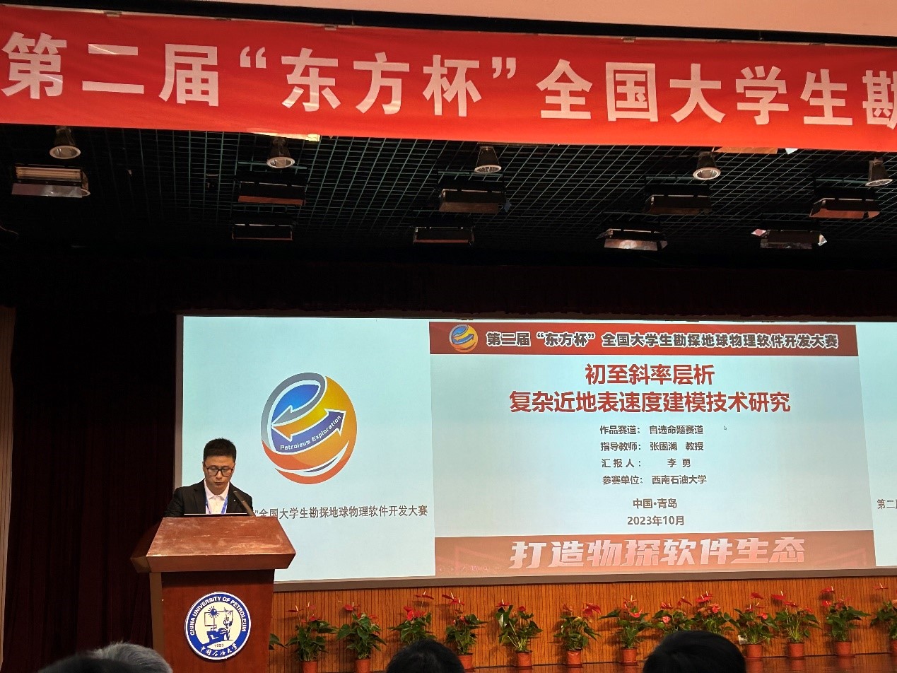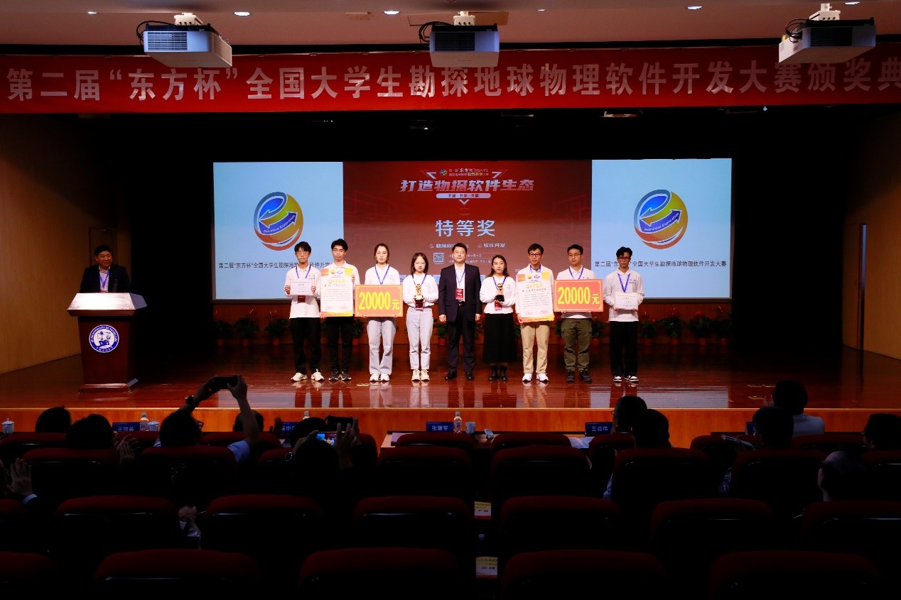 2023年10月21日,由中国石油集团东方地球物理勘探有限责任公司和中国石油大学(华东)联合创办,国际勘探地球物理学家学会(SEG)、中国地球物理学会勘探地球物理分会、中国石油学会石油物探专业委员会、中国石油集团东方地球物理勘探有限责任公司、油气勘探软件国家工程研究中心、中国石油大学(华东)、中国石油大学(北京)联合主办,中国石油大学(华东)承办的第二届“东方杯”全国大学生勘探地球物理软件开发大赛闭幕式暨颁奖典礼在中国石油大学(华东)逸夫礼堂隆重举行。我院学子获特等奖1项(全国2项),一等奖1项(全国10项),二等奖2项(全国12项),三等奖1项(全国18项);这是我院自2022年获特等奖和一等奖后,再次荣获特等奖和一等奖。我院教师张固澜、岳玉波和史云燕荣获优秀指导教师奖,我校获优秀组织奖。