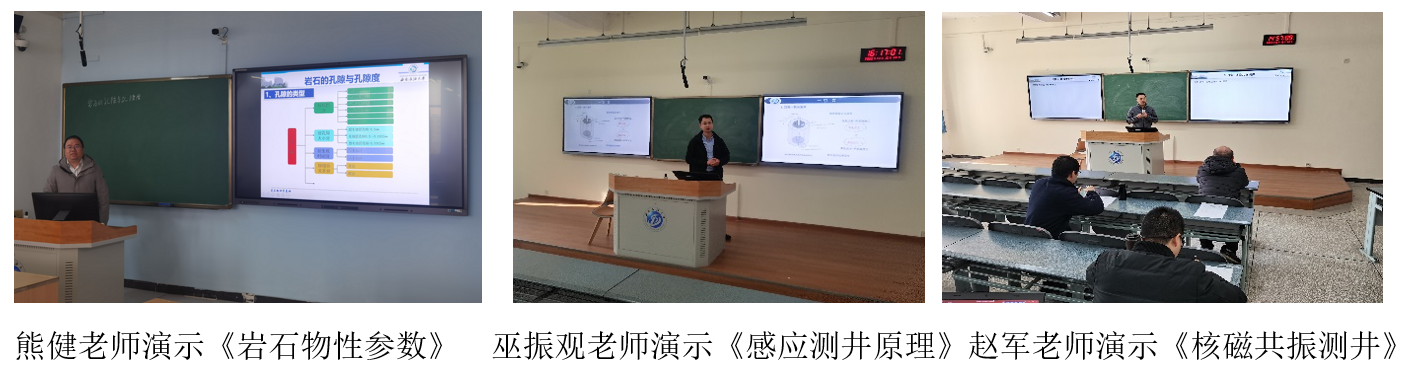 本阶段公开课展示旨在针对测井专业本科生课堂教学的教学方法和教学设计进行,围绕各自承担的本科生课程选取部分章节进行详细讲授,教学演示内容涵盖了《岩石物理学基础》、《测井方法与原理》、《测井资料处理与解释》、《生产测井原理与解释》等测井专业基础课程。