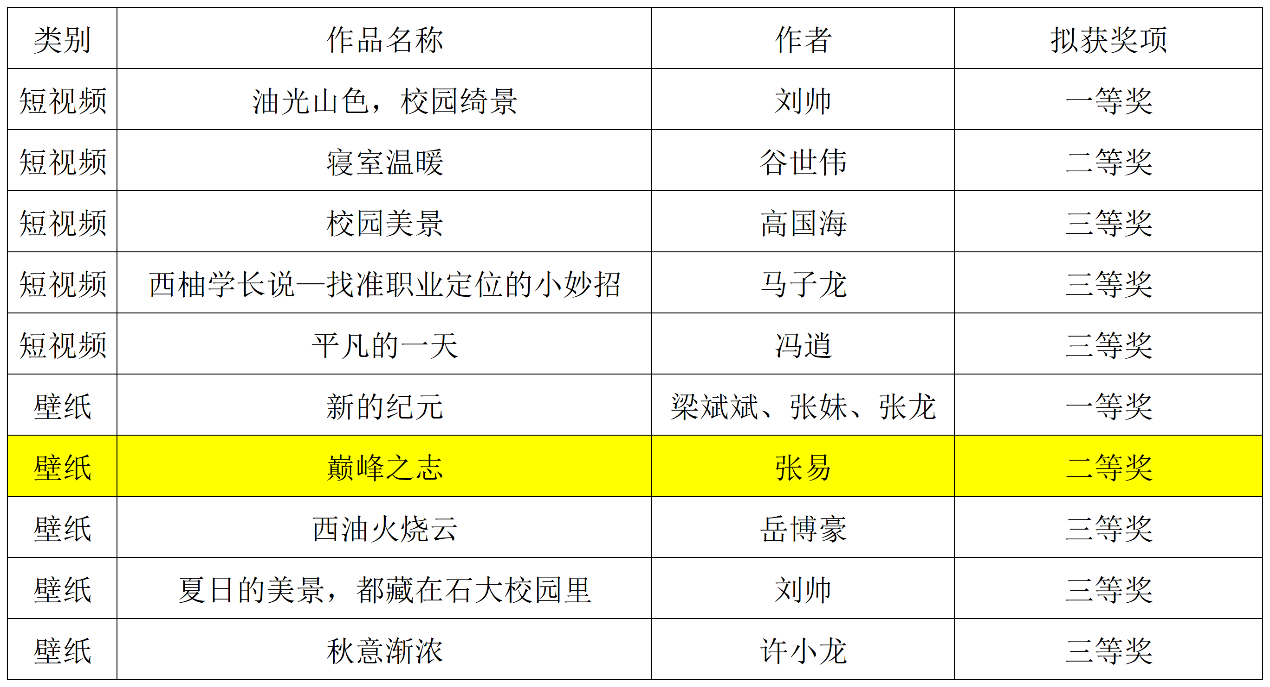 由我院研究生张易创作的壁纸《巅峰之志》斩获“石大正能量”微视频大赛二等奖。