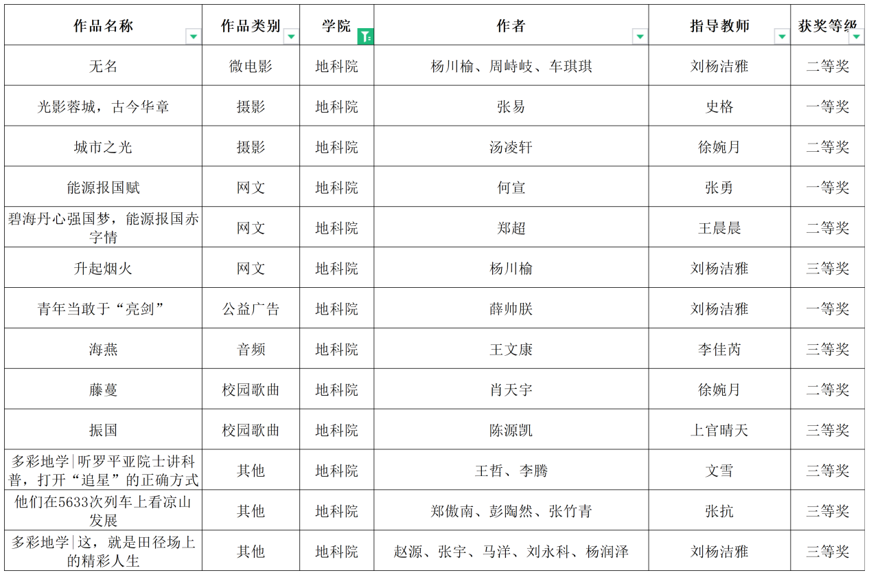 2023年“大学生网络文化节”网络文化作品征集活动地科院获奖名单