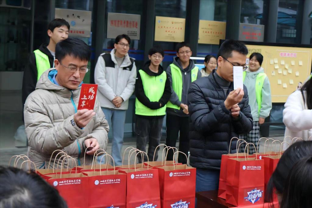活动现场集中发放结束,老师们也一一前往寝室、自习室、办公室等为考研学子送上这份浓情大礼包,让每位学子都能收到学院的祝福。