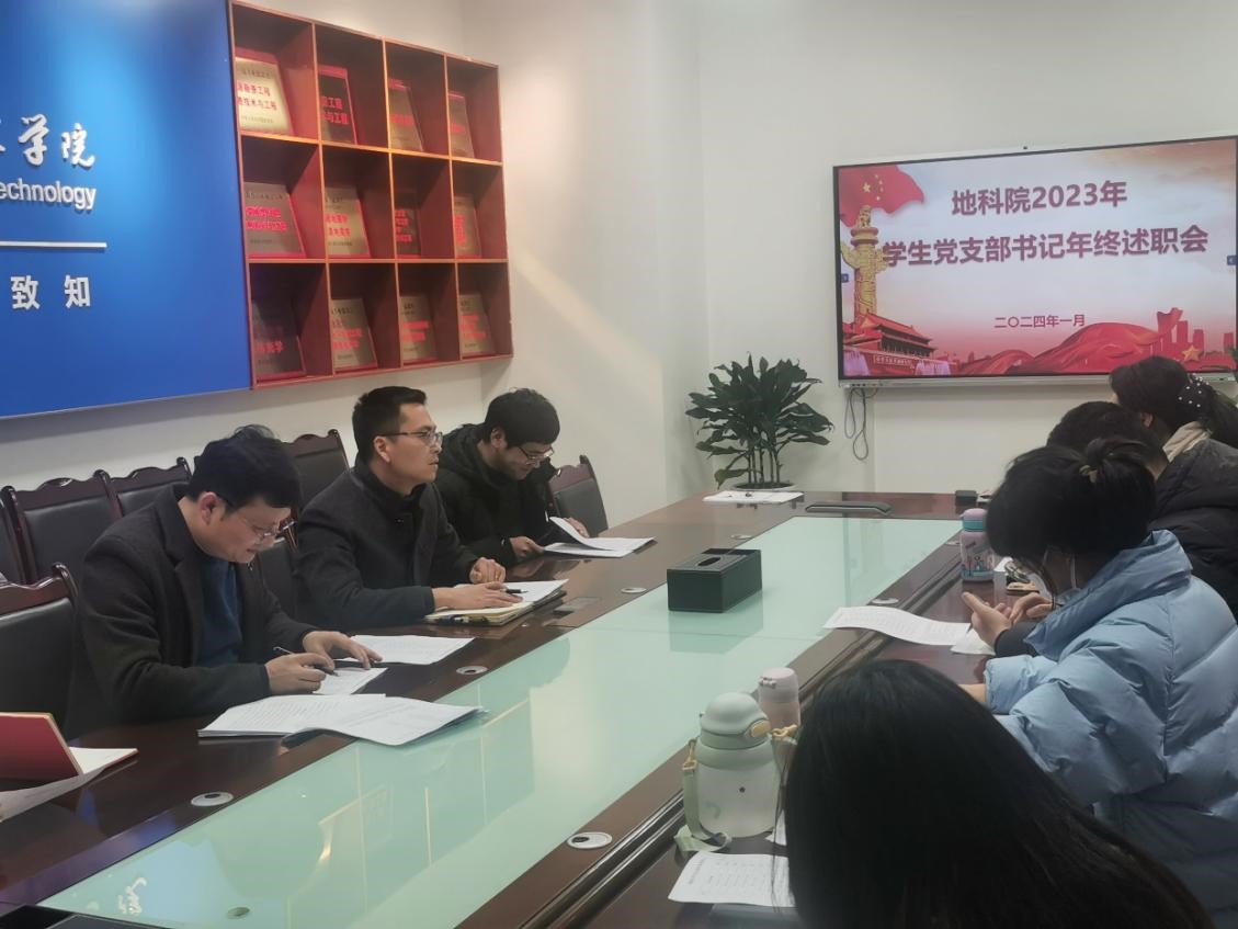 1月3日14:30,地球科学与技术学院在明辨楼A302会议室召开了2023年度学生党支部书记述职会。地科院党委副书记、纪委书记张勇和党委组织员李明科出席会议,各学生党支部书记、副书记和纪检委员参会。会议由张勇书记主持。
