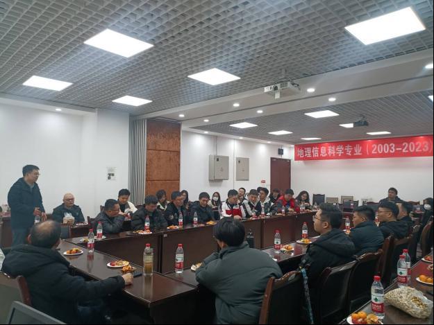 地信教研室主任汪宙峰向参会领导、校友们介绍了地理信息科学专业20年建设情况,他表示,20 年来地信能够取得一些发展成就,教研室靠的是学校学院几届党委行政的正确领导,靠的是产业界、学术界和众多校友的关心支持。地信专业以培养创新人才为目标,不断探索和完善人才培养体系,探索出“竞赛驱动,科教融合”的人才培养模式,围绕人与自然和谐共生,强化原始创新和成果转化,积极服务国家生态文明建设和地方经济社会发展,尤其是川渝经济圈的发展。2020年以来地信本科班级多次获得校十佳班级、十佳三号学生,十佳优秀学生干部。2021年获批为四川省一流学科专业建设点。2022年教研室和地信科研团队党支部分别获得学院优秀教研室、优秀党支部。在学科竞赛中,连续多年获得优秀的成绩。未来,在学校学院党政的坚强领导下,地信科研团队党支部和地信教研室将砥砺前行,不断推进地理信息科学专业发展再上新台阶,有效促进专业内涵建设。