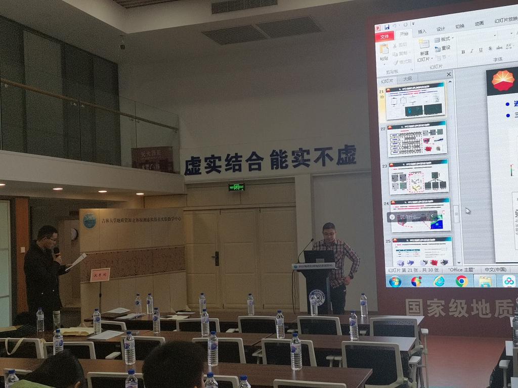 我院陈猛老师作为主持人主持大会主会场报告,硕士研究生杨富、成红秀和王争妍作分会场报告。其中,程超老师团队硕士研究生杨富针对四川盆地中部震旦系灯影组以《基于成像测井和决策树的储层流体识别方法研究—以四川盆地中部震旦系灯影组为例》为题、成红秀以《基于BO-CNN-LSTM的页岩储层横波速度预测方法》为题,陈猛老师团队硕士研究生王争妍以《致密气藏水平井气水两相流分相流体速度计算方法》为题进行报告,展示了我院相关研究团队在各自领域最新研究成果,并与参会人员积极展开交流讨论。会议间歇,我院师生参观了全国优秀教师、“时代楷模”、全国优秀共产党员黄大年纪念馆,瞻仰学习了黄大年老师的光辉事迹。