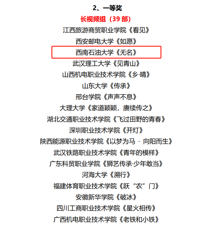 近日,由教育部高校思政课教学指导委员会主办的第七届“我心中的思政课”全国高校大学生微电影展示活动评选结果揭晓。我院创作的《无名》从全国参赛作品中脱颖而出,荣获长视频组全国一等奖(全国共39部)。