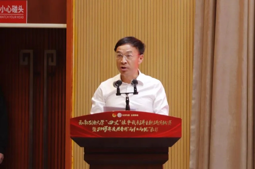 为深入学习贯彻习近平新时代中国特色社会主义思想,纪念五四学生爱国运动105周年,切实增强青年学生“四史”学习教育的亲和力和实效性,4月29日晚,西南石油大学“以史为鉴,立德铸魂”——“四史”故事我来讲主题演讲比赛暨2023年度共青团“两红两优”表彰在图书馆报告厅顺利举行。学校党委书记张烈辉,党委副书记、工会主席衡彤,省纪委省监委驻校纪检监察组组长、校党委副书记、纪委书记张明,党委常委、副校长刘向君出席活动,组织部副部长郭龙、宣传部副部长曹正、学工部部长张浩、团委书记肖友平、教务处副处长陈雨柯、招就处副处长陈奕宇、心理中心副主任舒小立担任本次比赛评委,全校广大师生以线上线下相结合的形式观看了本场比赛。