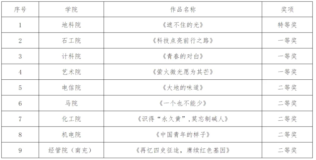 获奖名次公示
