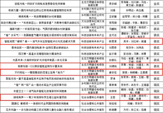吴丰、刘红岐和熊健老师指导的《智能地层“解码”者-油气开采压裂智能评价与优选解决方案》荣获科技创新和产业赛道银奖;郭亮、王晨晨等老师指导的《不约而砼-随裂随封的混凝土延寿“秘方”》及张军伟、郭亮等老师指导的《聚能无忧-基于高温储能技术应用于电网系统的岩床机组系统》获得生态文明建设和绿色低碳发展赛道银奖;文雪、王浩铮等老师指导的《掷地有声-青少年地球科学五维公益科普项目》荣获社会治理和公共服务赛道铜奖。