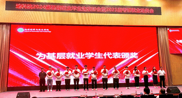 地科院党委书记赵晓明、院长黄旭日为基层就业学生代表颁奖