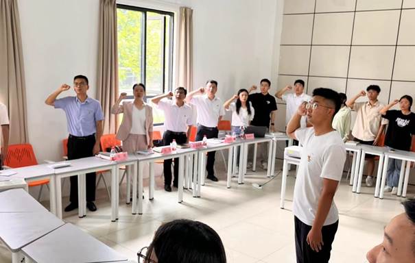 坚定信念,实干笃行。“我志愿加入中国共产党……”,面对党旗,全体党员高举右拳,重温入党誓词。研究生党员代表林宗鹏表示,“通过本次活动,更加明确了作为新时代学生党员的责任,今后将牢记使命,主动担当作为,勇攀科研高峰,积极弘扬‘为祖国加油、为民族争气’的石大精神”。本科毕业生党员代表黄玉聪说到:“作为一名毕业生党员,我们要牢记党和人民的重托,志存高远,踔厉奋发,争做‘有理想、敢担当、能吃苦、肯奋斗’的新时代好青年!”