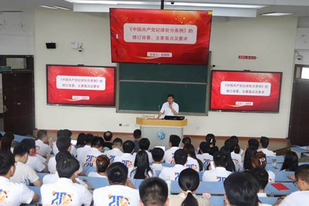 为进一步加强毕业生党员党性教育,强化党员意识,6月12日上午,在思学楼B210教室组织召开地科院2024届毕业生党员专题教育大会。地科院党委书记赵晓明在大会上作了“《中国共产党纪律处分条例》的修订背景、主要看点及要求”为主题的专题党课,地科院党委副书记、纪委书记张勇带领所有党员同志在党旗下郑重举起右手,重温入党誓词。本科毕业生代表潘广宇表达了自己对党、对母校、对老师和同学深深的感激之情,并表示今后踏入社会定会牢记自己的党员身份,强化自身党员责任意识,为党和国家的建设与发展贡献力量,为母校增光添彩。