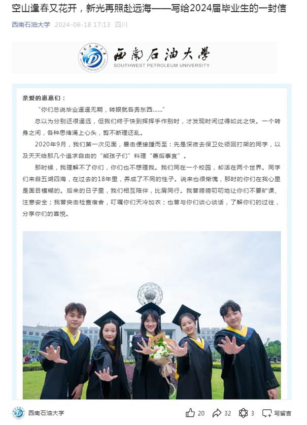 空山逢春又花开,新光再照赴远海——写给2024届毕业生的一封信