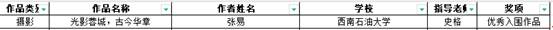 近日,教育部发布了第七届全国大学生网络文化节遴选结果,经作品征集、资格审核、专家遴选(初选、复选、终选)、作品政审等程序,地科院地质学21级硕士研究生张易的摄影作品《光影蓉城,古今华章》入选摄影类优秀入围作品。