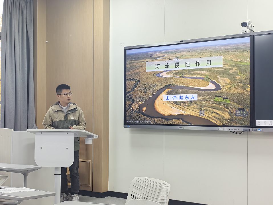 地科院副院长赵虎作赛前动员,介绍了青年教师课堂教学比赛组织的背景和意义,指出本次教学比赛,既是搭建学院青年教师展示教学、互相交流的教学情境,也是为全国大学青年教师地质课程教学比赛选拔参赛教师。