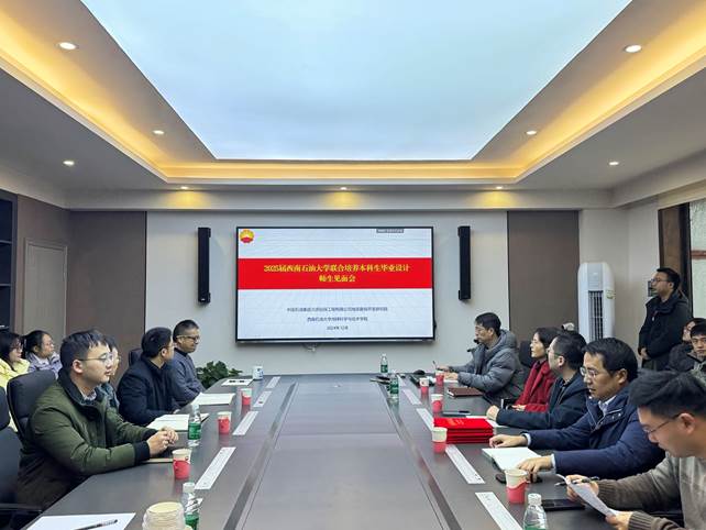 12月13日,地科院师生赴中国石油川庆钻探工程公司地质勘探开发研究院,参加校企联合指导毕业设计师生见面会。地科院副院长刘宏,资勘专业建设负责人唐洪,油气地质教研室主任杨辉廷、副主任葛家旺,教学办公室主任张俊峰,毕业班辅导员刘杨洁雅以及14名资勘专业应届毕业生参加本次会议。
