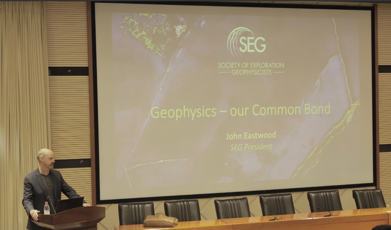 2025年3月1日上午,国际勘探地球物理学家学会(SEG)主席John Eastwood先生应邀访问西南石油大学,并为师生带来了一场题为《Geophysics - our Common Bond(地球物理学:我们共同的纽带)》的学术报告。本次会议由西南石油大学地球科学与技术学院、西南石油大学SEG学生分会等联合主办,旨在搭建国际学术交流平台,推动地球物理领域的前沿探索。