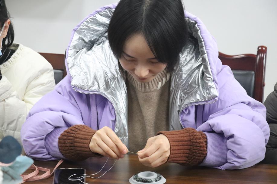 各位老师创新搭配,挑选心仪的水晶,动手编织属于自己的独特手串。活动现场氛围热烈温馨,老师们积极交流,相互学习,将带有美好寓意的水晶和自己真挚的愿景编织成一串串手链,或赠与家人,或取悦自己。大家相互展示作品,相互欣赏,拍照留念,留下美好瞬间。学院还为各位女教职工赠送了艾草锤寓意着健康和幸福。
