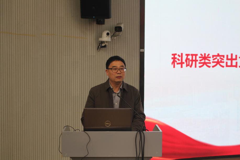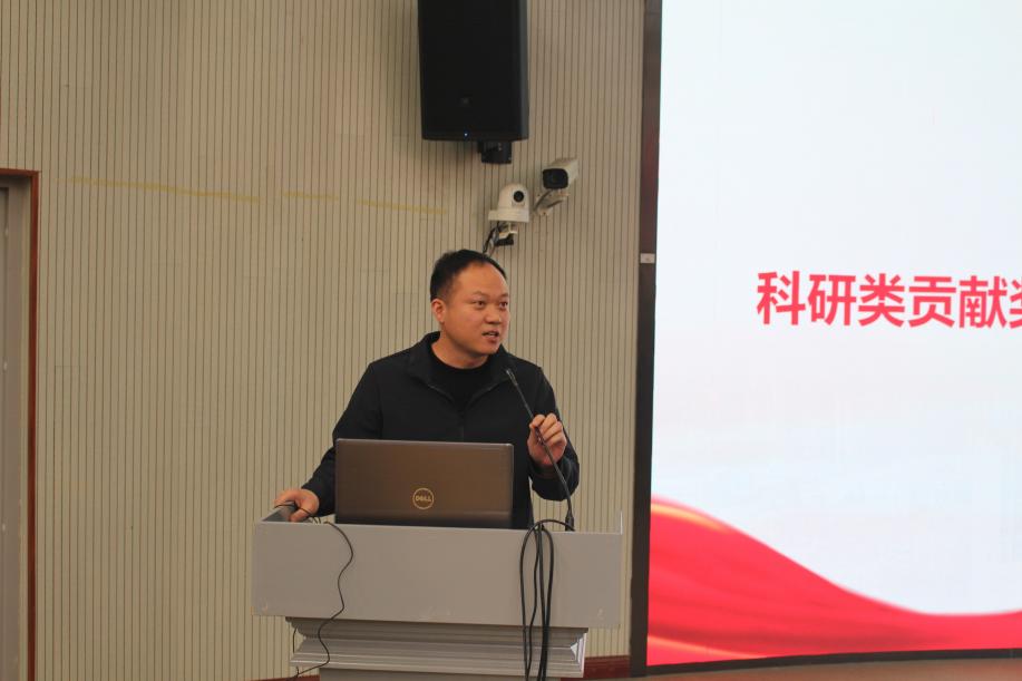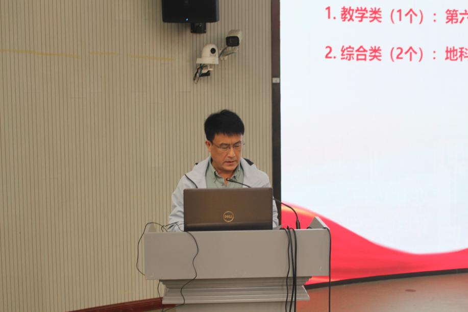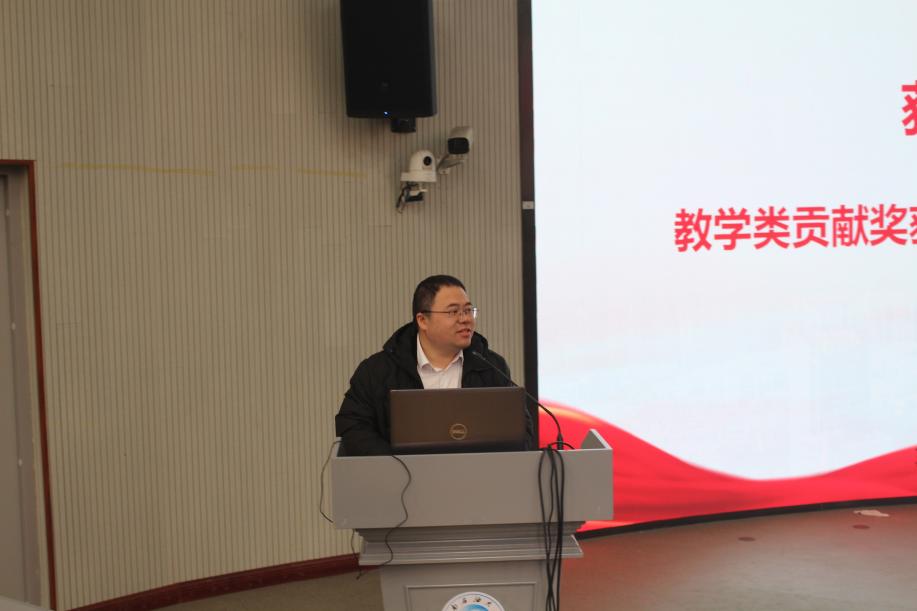 科研类突出贡献获奖代表,基础地质教研室唐洪明教授表示,科研教学工作要做到传承创新、奋进担当,并提出四点心得:一是“站稳讲台”,通过系统备课与终身学习夯实专业根基;二是以科研项目为纽带,推动学科交叉与国家级平台建设;三是积极凝练成果,申报重大奖项;四是牢记“教育是使命而非职业”,做到使命在肩,育人不倦,以时代担当助力学院发展。