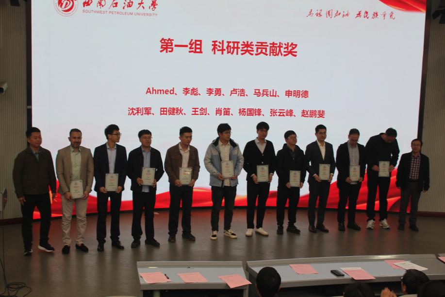 黄旭日宣读了《地科院2024年度优秀个人和先进集体表彰文件》,向获奖者表达热烈的祝贺和衷心的感谢。他号召全院教职工以建设“世界一流学科”为目标,坚持教学科研与人才培养并重,继续秉承“大地无垠,格物致知”的院训,在新征程中再创辉煌。学院领导班子成员、四川省优秀党务工作者付修根教授、四川省学术与技术带头人唐洪明教授为获奖的个人和集体代表颁发荣誉证书。