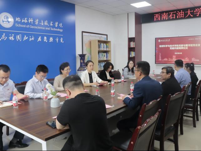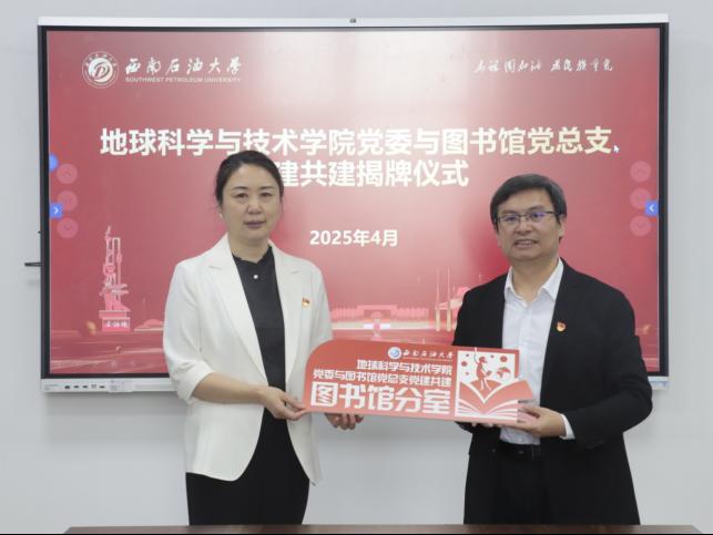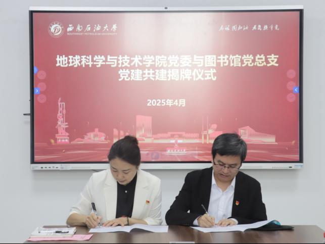 4月16日,地科院与图书馆开展党建共建,签订党建共建协议并共同为“西南石油大学图书馆地球科学与技术学院分室”揭牌。学校图书馆党总支书记、馆长杨春丽,党总支副书记、副馆长李丹;地科院党委书记赵晓明,党委副书记、纪委书记张勇出席会议。双方各党支部、科室老师代表参会,会议由张勇主持。