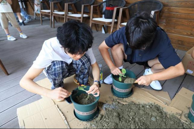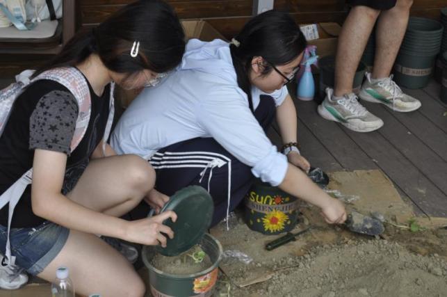 实践环节以“手植希望,心沐阳光”为主题,师生前往明辨楼三楼平台开展向日葵种植活动。工作人员详细讲解选种、移栽、养护等知识后,同学们分组协作,小心翼翼地将幼苗移栽至花盆中。填土、压实、浇水,每一步都饱含对生命成长的期待。刘文轩同学在实践后分享感悟说,“移栽需注意根系保护与土壤湿度,就像学习知识一样,需细心呵护、循序渐进。”活动尾声,师生为花盆贴上“成长心愿卡”,将自己对生命成长的期待和美好心愿寄托在小小的花盆上。随后,大家抽取地科院原创心理情景剧《长大》主题周边 ——“小狗皮皮”情绪挂坠作为纪念品。