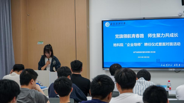 为深入践行中共中央组织部、共青团中央《关于加强新形势下基层党建带团建工作的意见》文件要求,有效搭建师生交流平台,2025年5月29日,地科院油气地质教研室党支部于明辨楼C108举办了“党旗领航青春路师生聚力共成长”师生面对面交流活动。本次活动特别邀请了川庆地研院非常规油气研究中心副主任吴家杰做专题报告,地科院党委副书记、纪委书记张勇,资源勘查工程专业负责人唐洪、油气地质教研室主任杨辉、党支部书记丁熊及资源勘查工程2022级创新班和产业班的全体同学参加了本次活动。活动由油气地质教研室党支部书记丁熊主持。
