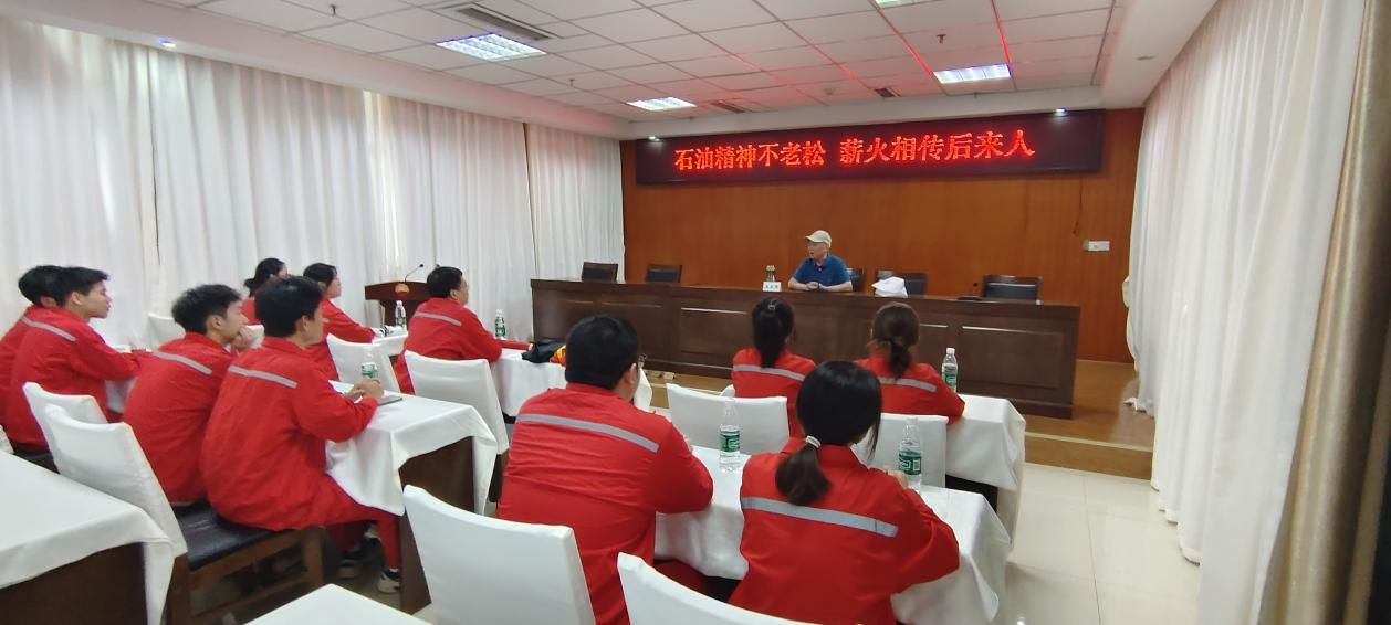 为深入贯彻习近平总书记关于"把红色资源利用好、把红色传统发扬好、把红色基因传承好"的重要指示精神,我院资源勘查工程2022级生产实习队临时党支部于6月29日赴西南油气田公司川西北气矿老干部活动中心开展了主题为“石油精神不老松,薪火相传后来人”的党员教育学习活动。活动邀请了川西北气矿原总地质师庞家黎同志担任主讲。