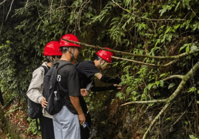 新增四溪沟实习剖面,试点自主探索新模式:基于2024年暑期实习踏勘的新剖面,地质学和资源勘查专业首次启用“四溪沟三叠系碳酸盐岩剖面”作为全新实习路线,试点“教师引导+学生主导”的自由探索模式。在此路线上,指导教师角色从“主讲者”转变为“引导者”,教师仅在实习前提示学生关于本路线的主要观察内容和典型地质现象。学生在掌握基础地质野外技能之后,被赋予充分的自主探索权,需结合所学知识和教师提示,以小组为单位,自行观察记录、分析讨论沿途地质现象(如岩性、溶洞景观、喀斯特地貌、地质构造与沉积构造等)。地质学第三实习小组组长张宸赫说,“在经过了前几天由指导老师全程带领下的龙门硐和川主路线实习之后,我们掌握了野外实习观察记录的基本方法和技能,四溪沟路线这种自主探索的实习模式极大激发了我们的好奇心和求知欲,点燃了我们自主探索地质奥秘的热情”。