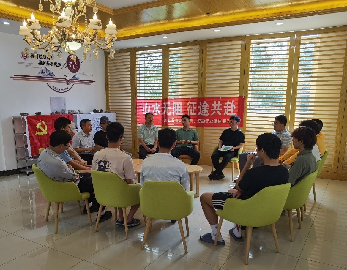 思政铸魂与校企联合,共育地质攀登者: 实习期间,在教研室与党支部的支持下,实习队组织了实践育人元素的挖掘,深入研讨实习过程与思政教育的有机融合路径。在实习过程中,实习队精心组织了集体观看电影《攀登者》的主题分享活动。影片中展现的珠峰攀登者们不畏艰险、勇攀高峰的执着精神,让已经经历过野外实习的同学们产生强烈共鸣,在每位同学心中埋下 “为祖国找矿、为祖国加油”的使命火种。这场生动的“课程思政”课,不仅鼓舞了学生的实习热情,同时有效强化了学生的专业认同感、行业自豪感和艰苦奋斗的决心。在校企协同育人环节中,同学们在了解完峨眉山地区纯净水产业发展后,纷纷感叹“原来地质勘探不仅能找矿、找油,还能保障饮用水安全,发展产业造福一方,让我们对地球科学的前景有了更加坚定的信心”。光影中的地学精神不但激励同学们在野外实习过程中敢于攀登,勇于奋斗,更引导同学们立志成为服务国家能源安全、守护宜居环境的新时代地质攀登者。