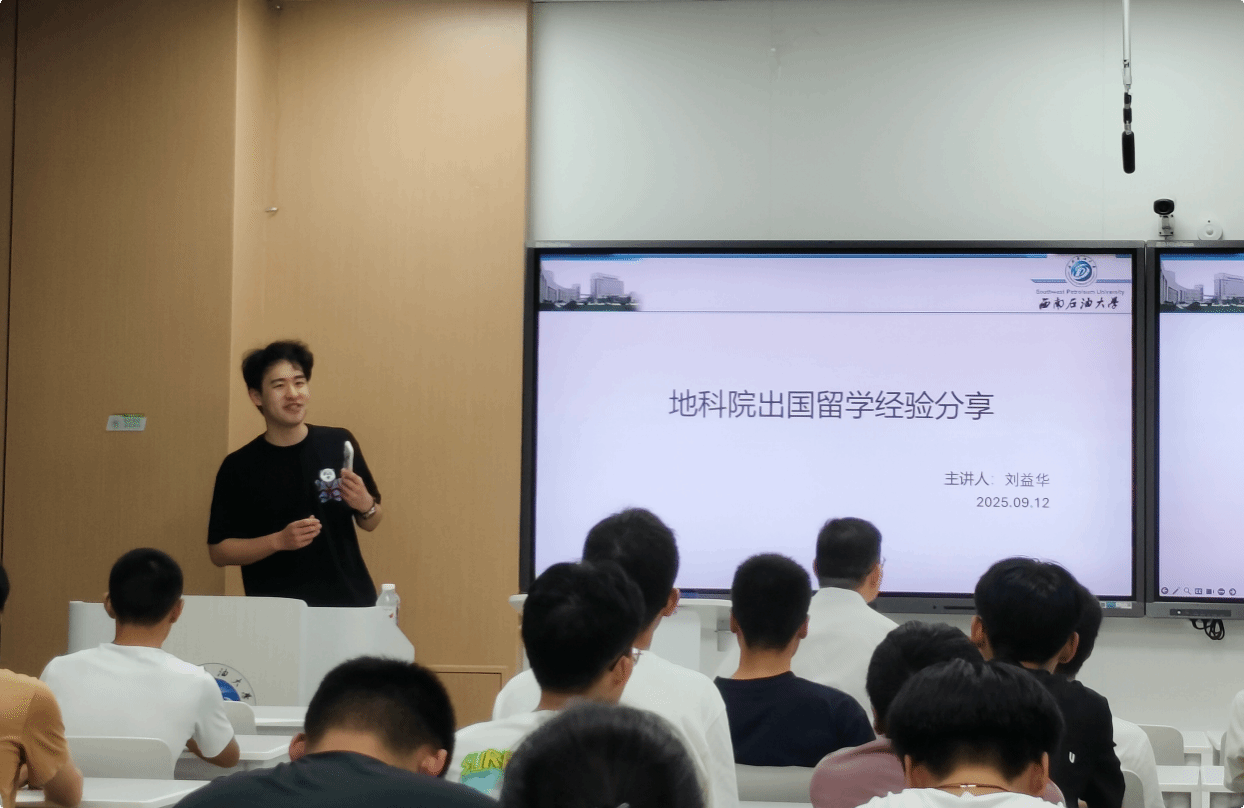 9月12日,由学校校友工作领导小组办公室主办,地科院校友工作组承办的第23期“校友会客厅”活动在明辨楼C105举行,我校资源勘查工程2013级国际班校友刘益华担任主讲,为学弟学妹们分享留学经验,讲座内容涵盖留学规划、申请策略与跨专业申请等多个实用主题。